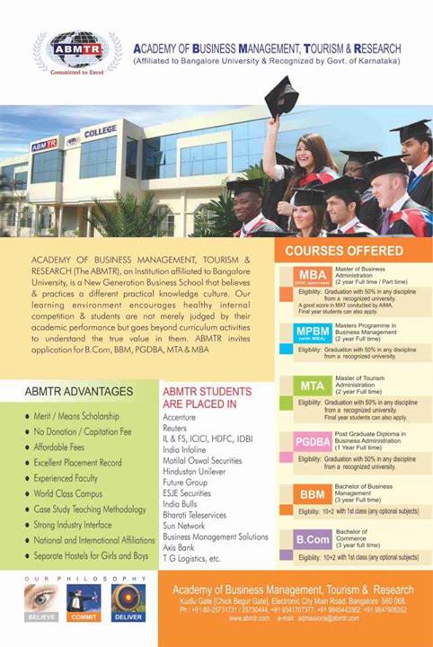 Full-time courses offered: M.B.A. (All Specializations), M.T.A., B.B.M. & B.Com.